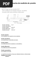 conocidas (barómetro cubeta, manómetro de tubo en U, manómetro de