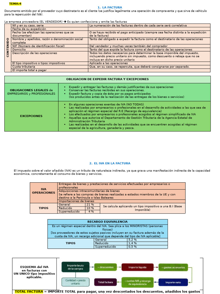 IMPORTE BRUTO – Descuentos + Gastos = Importe neto o base imponible + IVA + R.E = TOTAL a PAGAR