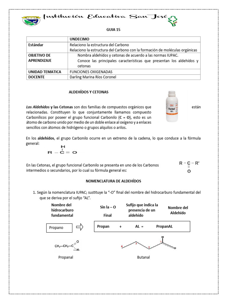 OBJETIVO DE 1. Nombra aldehídos y cetonas de acuerdo a las normas IUPAC.