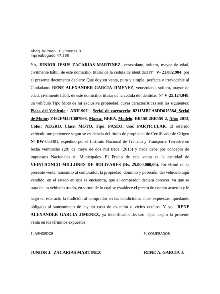 Yo, JUNIOR JESUS ZACARIAS MARTINEZ, venezolano, soltero, mayor de edad,