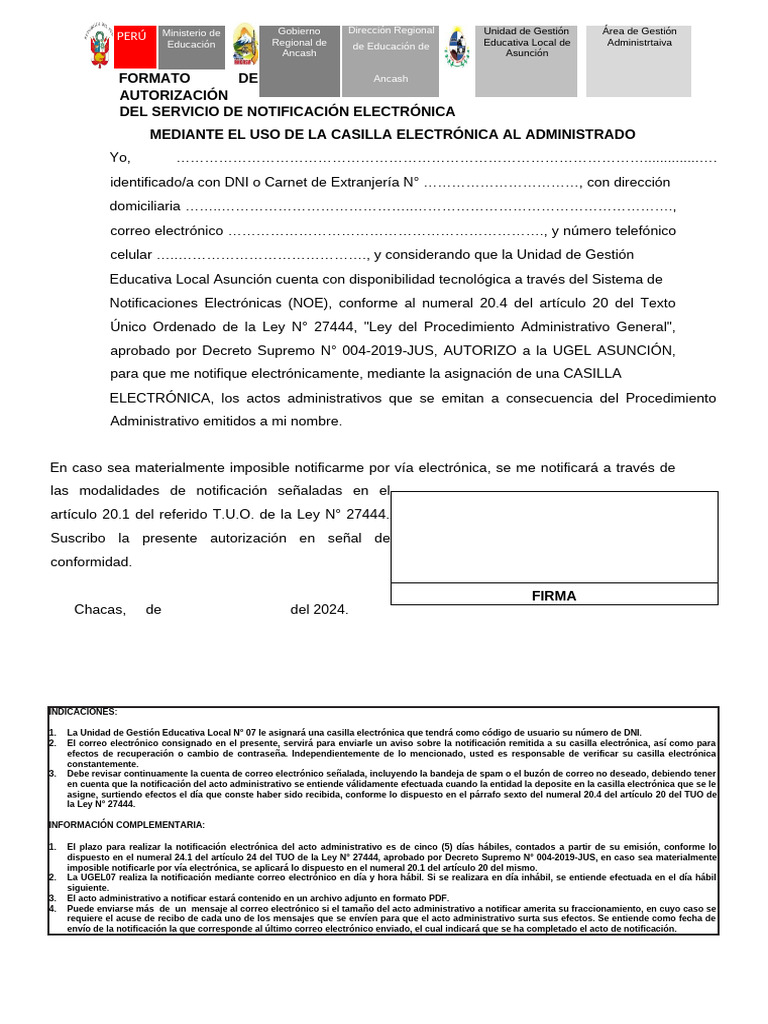 aprobado por Decreto Supremo N° 004-2019-JUS, AUTORIZO a la UGEL ASUNCIÓN,