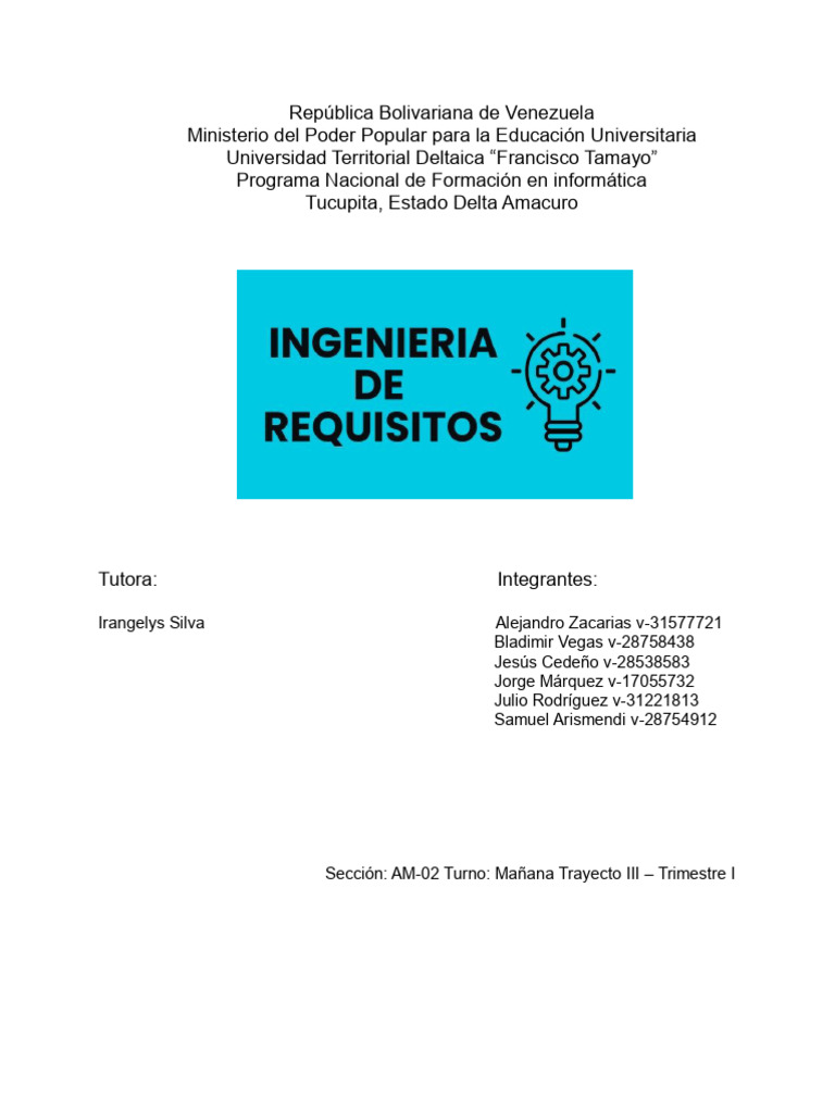 La ingeniería de requisitos es un conjunto de procesos, tareas y técnicas que