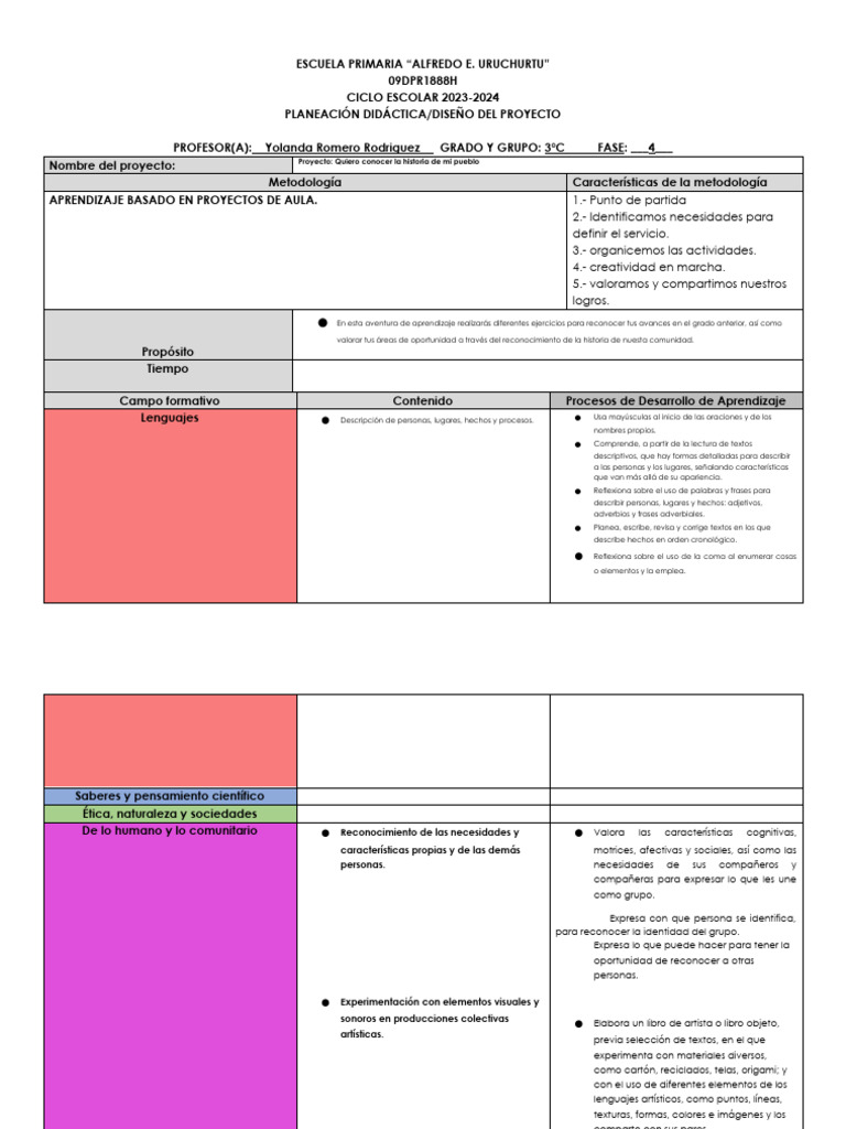 PROFESOR(A): Yolanda Romero Rodriguez GRADO Y GRUPO: 3°C FASE: ___4___