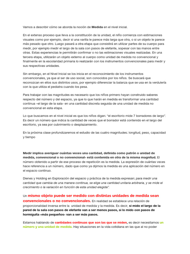 En el nivel inicial se hace un trabajo intencional con la medida que implica que el docente