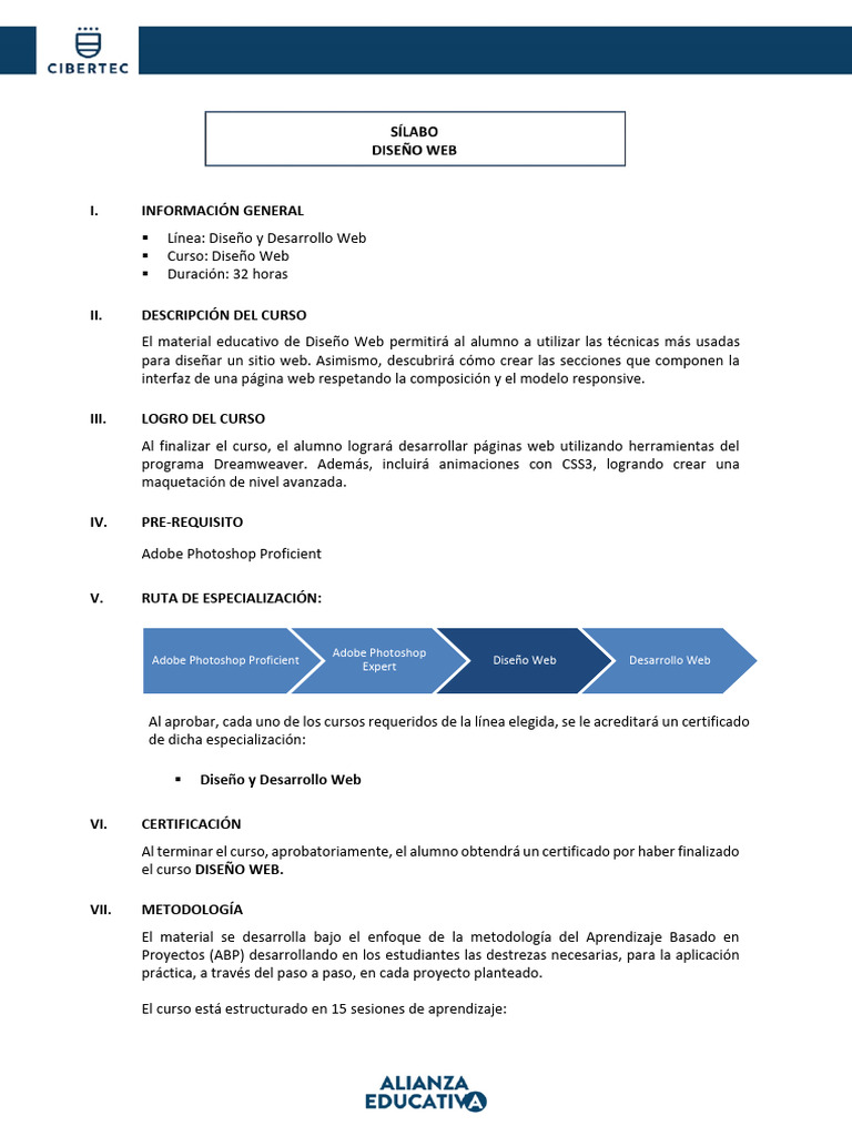 El curso está estructurado en 15 sesiones de aprendizaje: