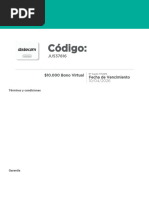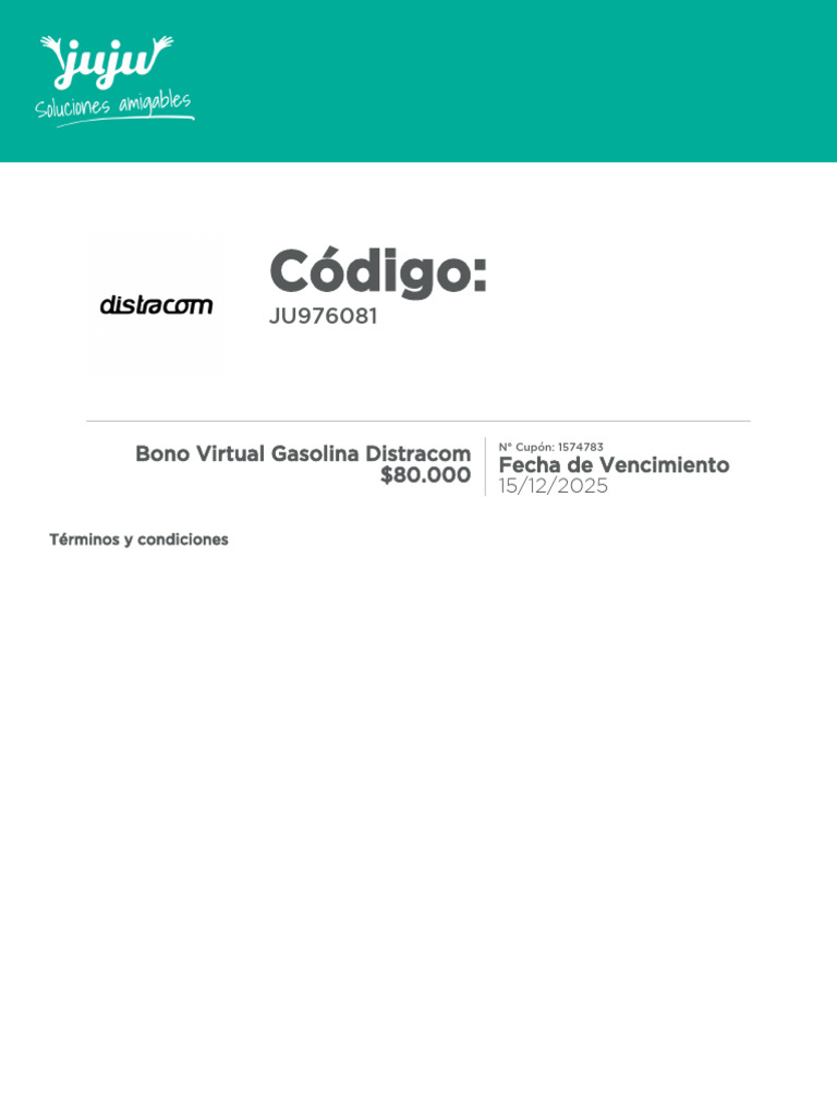 Vigencia: Juju S.A.S garantizará una vigencia mínima de uso de 6 meses a partir de la fecha de envío del bono.