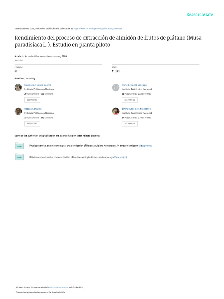 principalmente almidón, por lo que se puede diversificar su uso como materia prima para el aislamiento de este polisacárido. El objetivo del