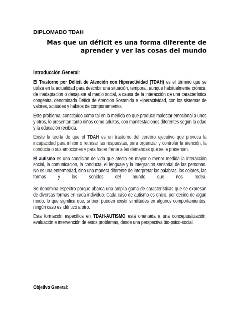 Esta formación específica en TDAH-AUTISMO está orientada a una conceptualización,