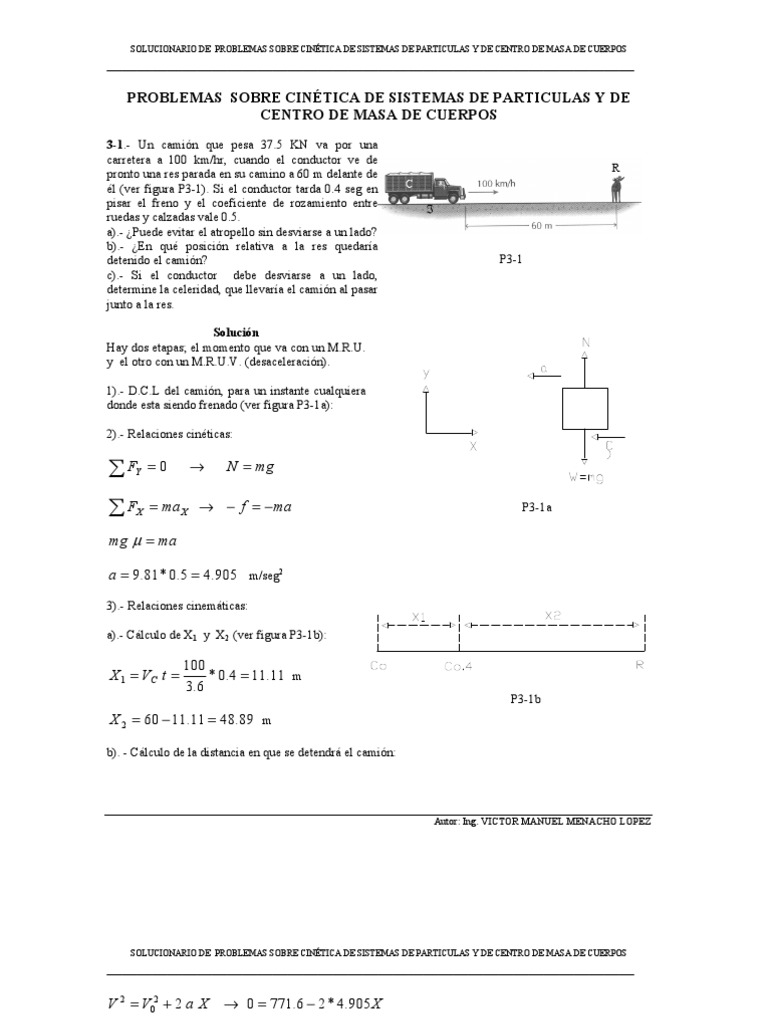 SOLUCIONARIO DE PROBLEMAS SOBRE CINTICA DE SISTEMAS DE PARTICULAS Y DE CENTRO DE MASA DE CUERPOS
