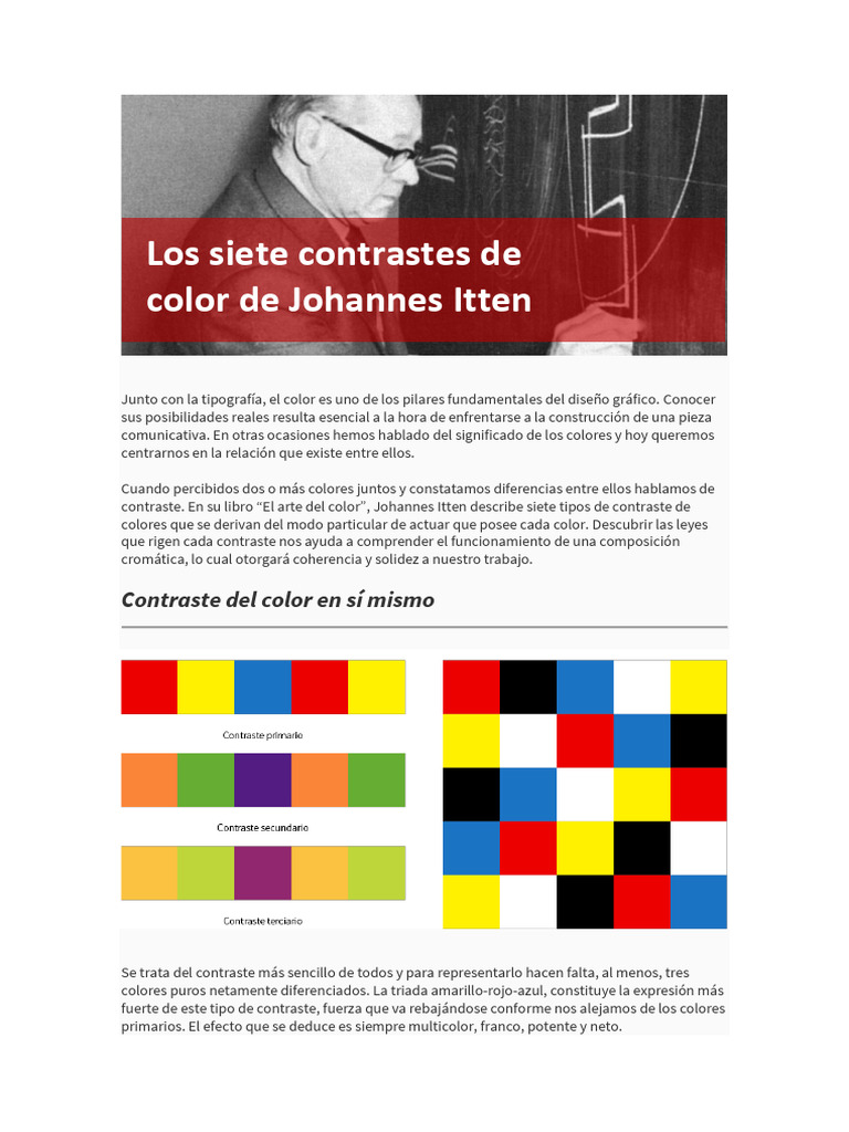 contraste. En su libro “El arte del color”, Johannes Itten describe siete tipos de contraste de
