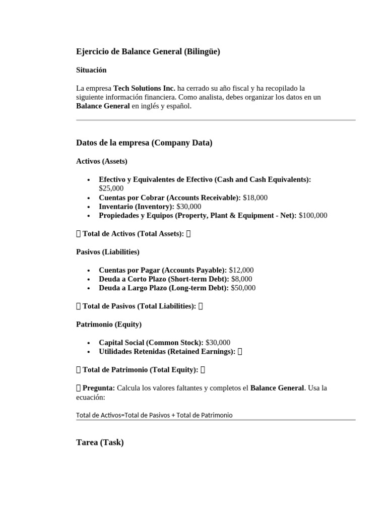 Ejercicio de Balance General (Bilingüe)