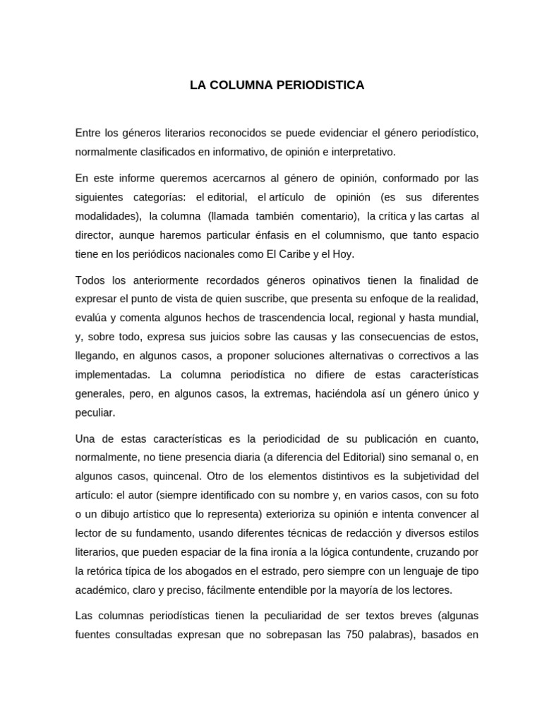 Las columnas periodísticas tienen la peculiaridad de ser textos breves (algunas
