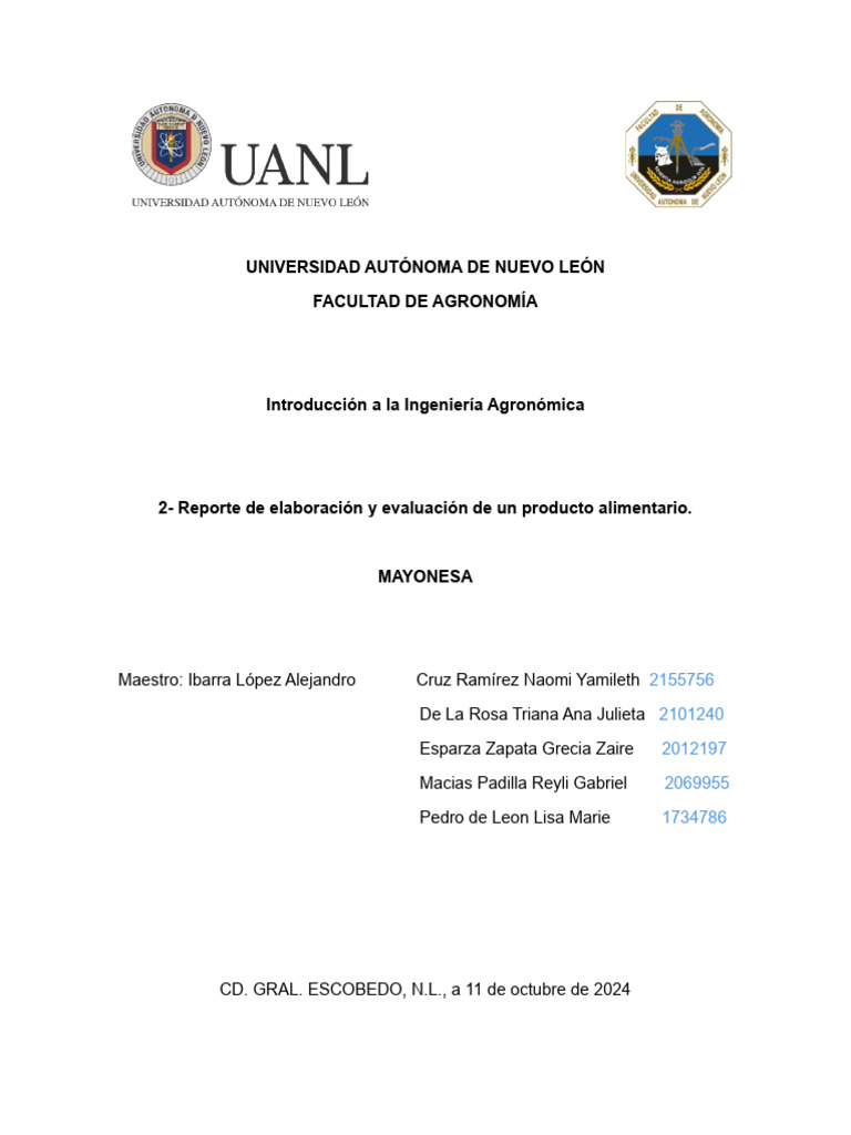2- Reporte de elaboración y evaluación de un producto alimentario.
