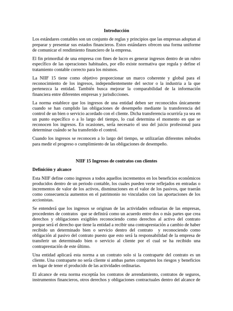 NIIF 15 Ingresos de contratos con clientes