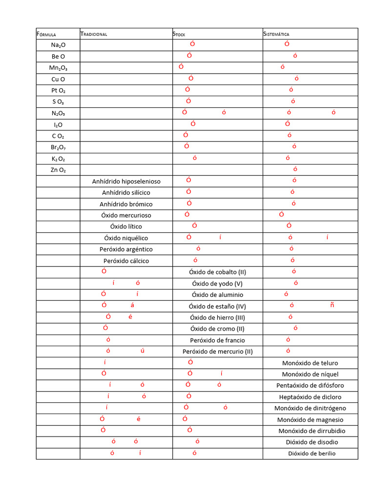EJERCICIOS: ÓXIDOS Y PERÓXIDOS