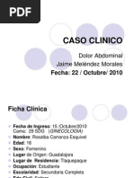 Médico al lado derecho, a la altura del hipocondrio, la mano