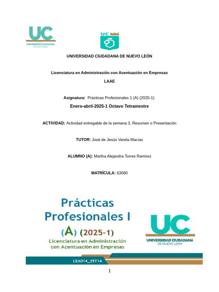ACTIVIDAD: Actividad entregable de la semana 3, Resumen o Presentación