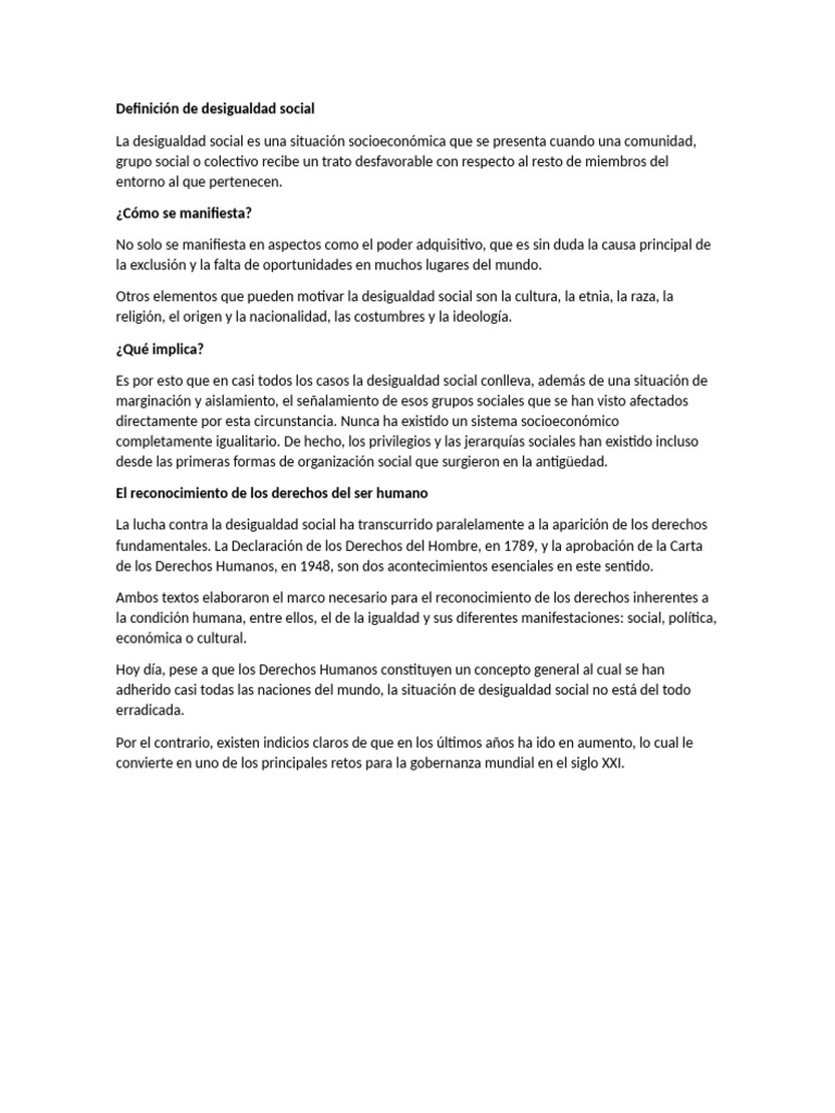 adherido casi todas las naciones del mundo, la situación de desigualdad social no está del todo