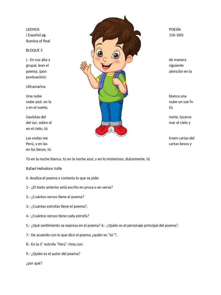 CARACTERÍSTICAS DE LOS POEMAS. Lee el poema y contesta lo que se pide a un costado.