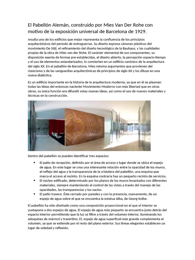 del siglo XX. En el pabellón de Barcelona, Mies retoma argumentos que provienen del