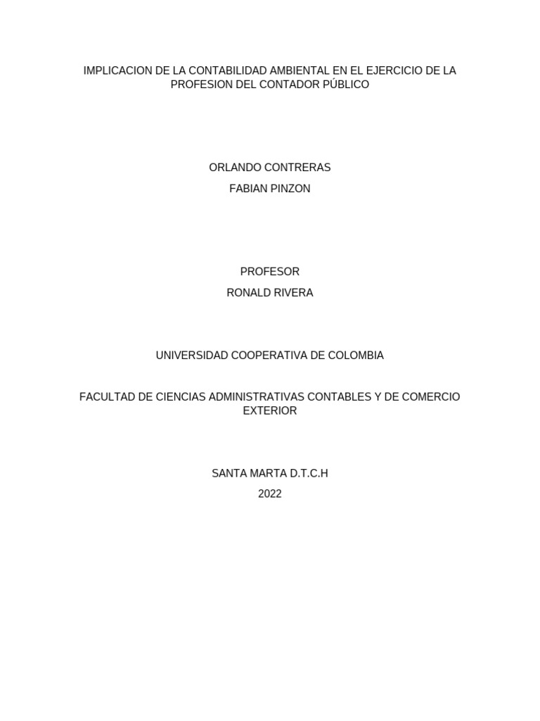 Este trabajo se emprendió para analizar el concepto de contabilidad ambiental en