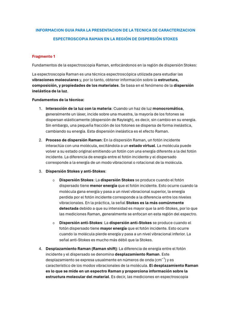 Fundamentos de la espectroscopia Raman, enfocándonos en la región de dispersión Stokes: