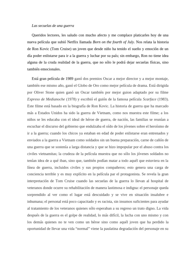 nueva película que subió Netflix llamada Born on the fourth of July. Nos relata la historia