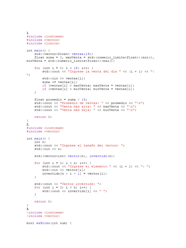 std::cout << "Promedio de ventas: " << promedio << "\n";