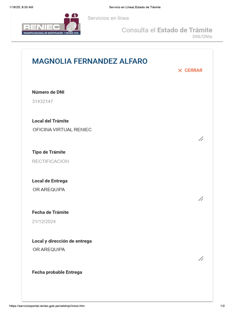 1/16/25, 8:30 AM Servicio en Línea| Estado de Trámite