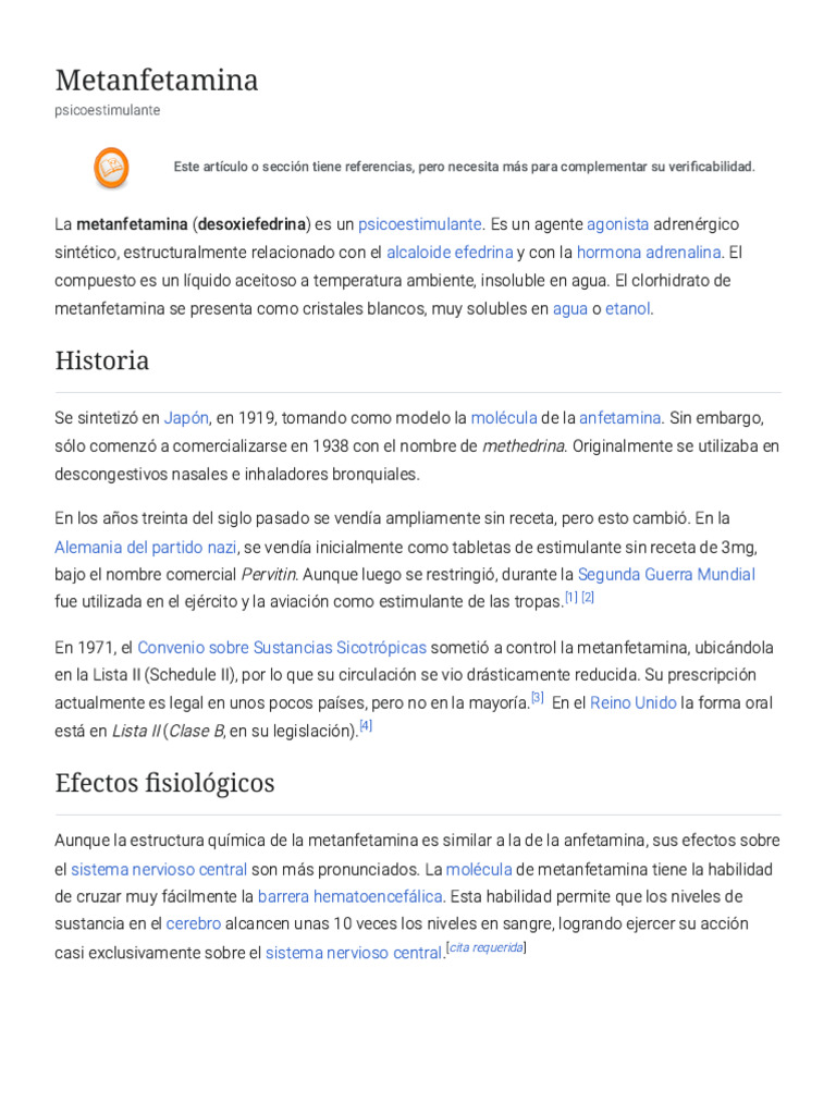 La metanfetamina (desoxiefedrina) es un psicoestimulante. Es un agente agonista adrenérgico