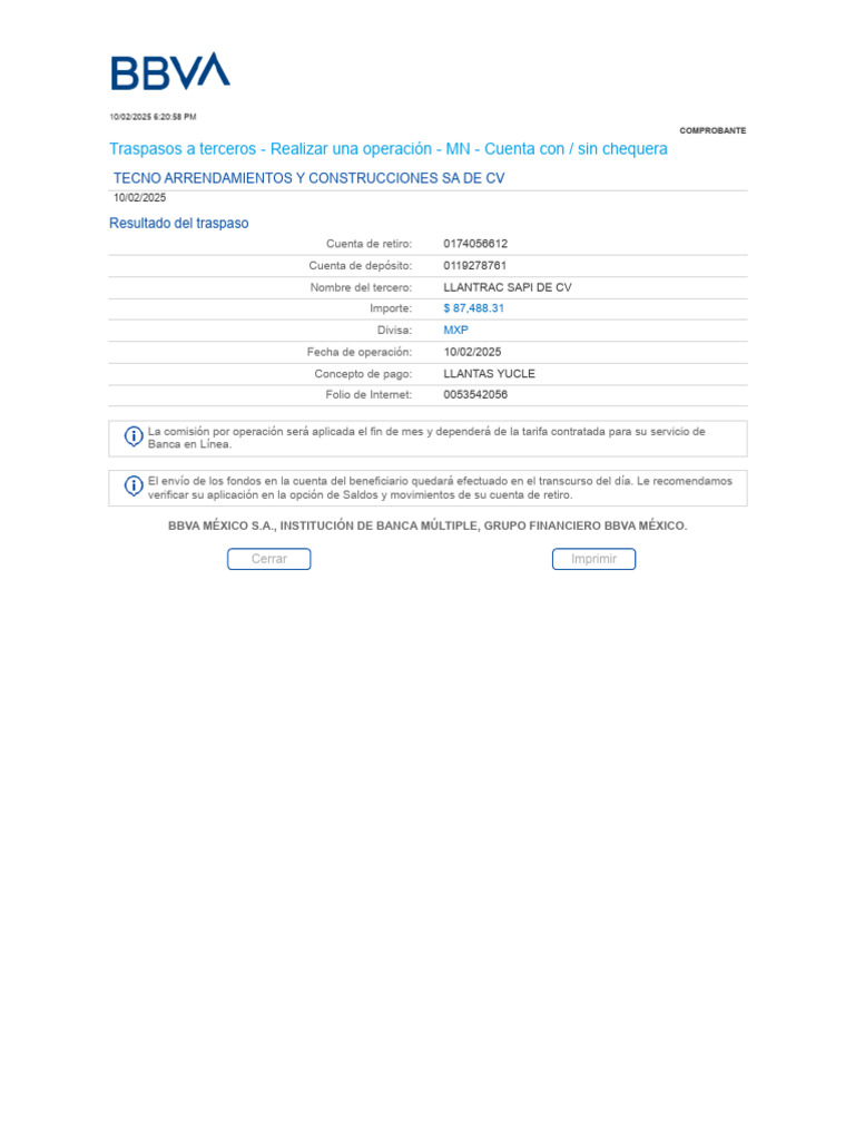 Fecha de operación: 10/02/2025