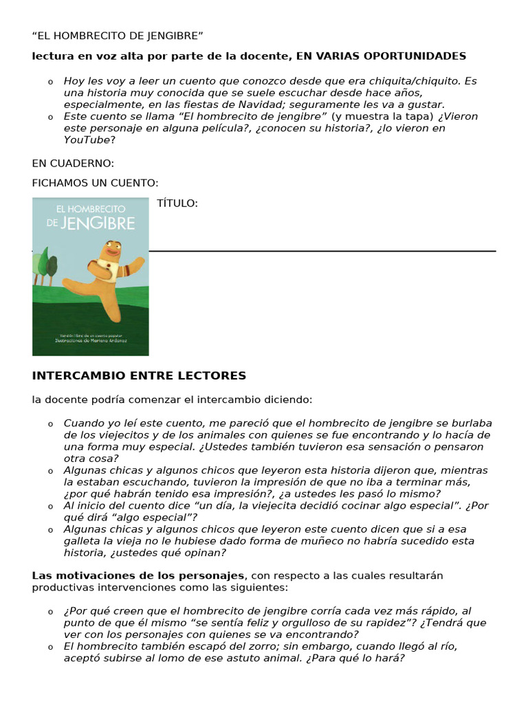 o Volvamos a leer la parte donde el hombrecito de jengibre se encuentra con el