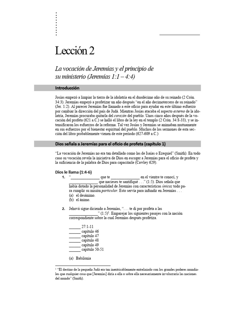 “La vocación de Jeremías no era tan detallada como las de Isaías o Ezequiel” (Smith). En todo