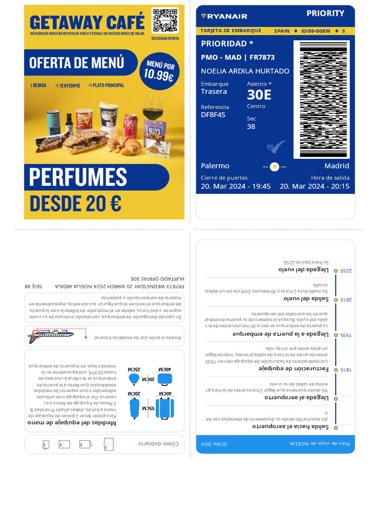 18:15 Facturación de equipaje 40CM 25CM