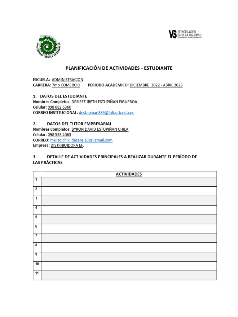 PLANIFICACIÓN DE ACTIVIDADES - ESTUDIANTE