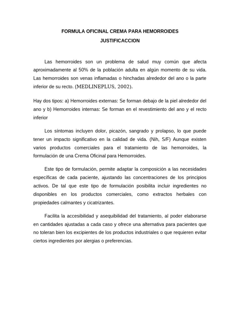 FORMULA OFICINAL CREMA PARA HEMORROIDES