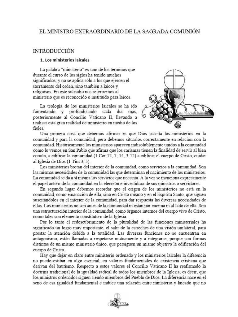 EL MINISTRO EXTRAORDINARIO DE LA SAGRADA COMUNIÓN