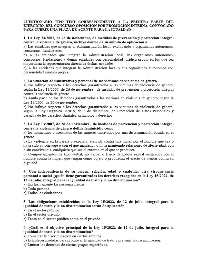 CUESTIONARIO TIPO TEST CORRESPONDIENTE A LA PRIMERA PARTE DEL