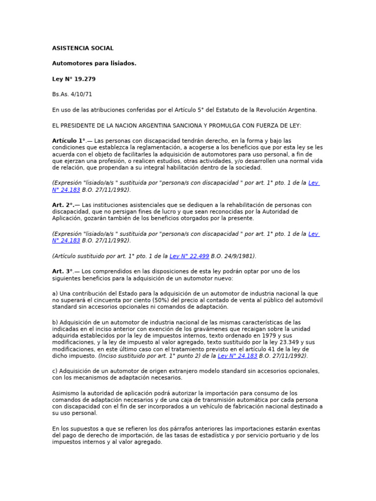 (Expresión "lisiado/a/s " sustituida por "persona/s con discapacidad " por art. 1° pto. 1 de la Ley