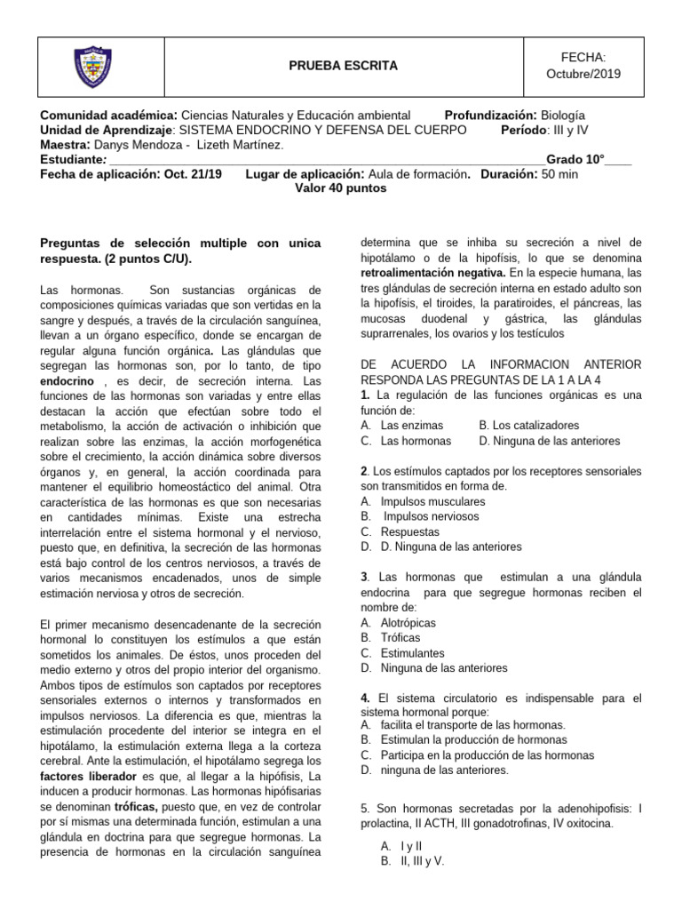endocrino , es decir, de secreción interna. Las RESPONDA LAS PREGUNTAS DE LA 1 A LA 4