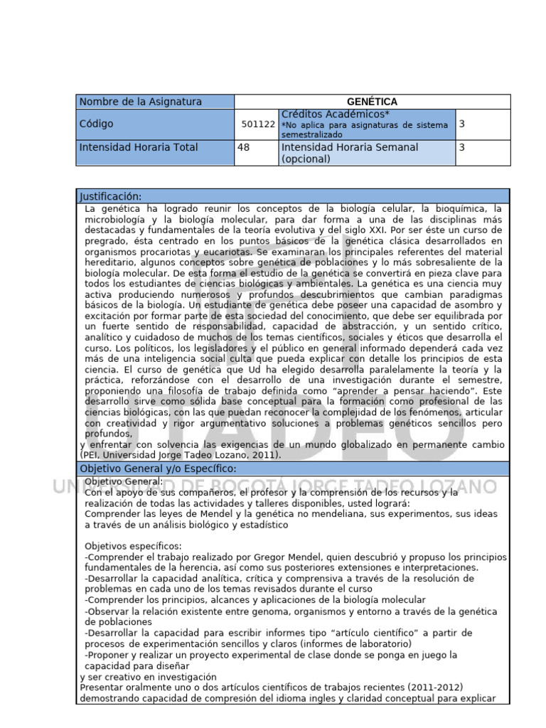 Nombre de la Asignatura GENÉTICA