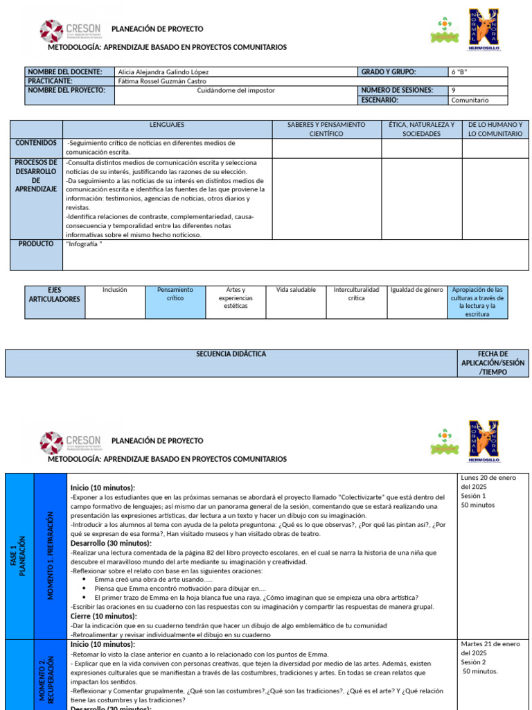 NOMBRE DEL PROYECTO: Cuidándome del impostor NÚMERO DE SESIONES: 9