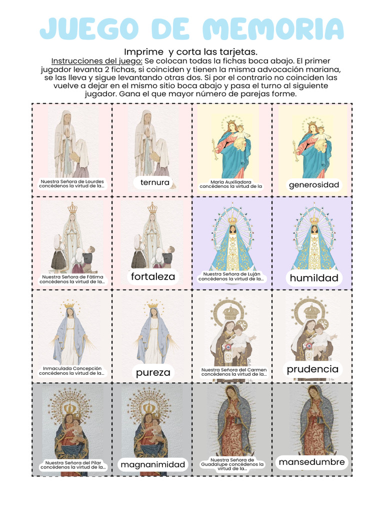jaculatoria para conocer sobre la Virgen, las virtudes y rezar jugando.