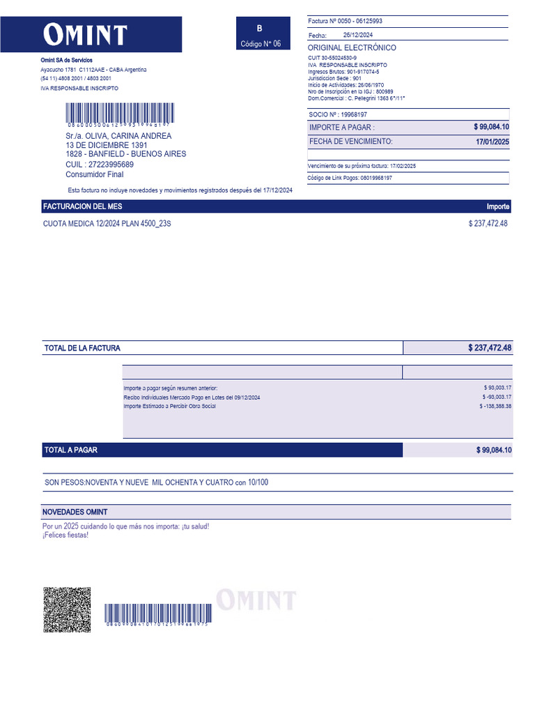Esta factura no incluye novedades y movimientos registrados después del 17/12/2024