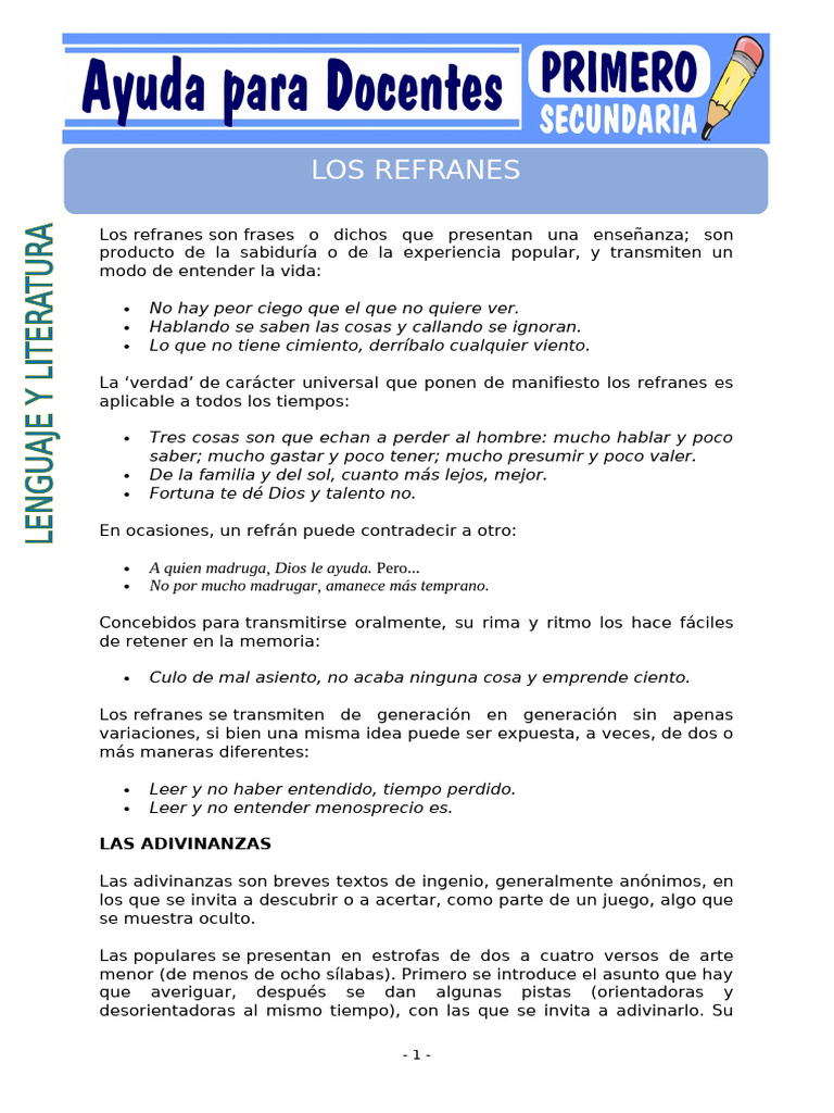 Los refranes son frases o dichos que presentan una enseñanza; son