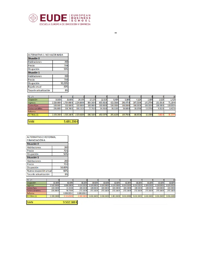 En resumen, la remodelación del hotel vía Project Finance es la opción más rentable,