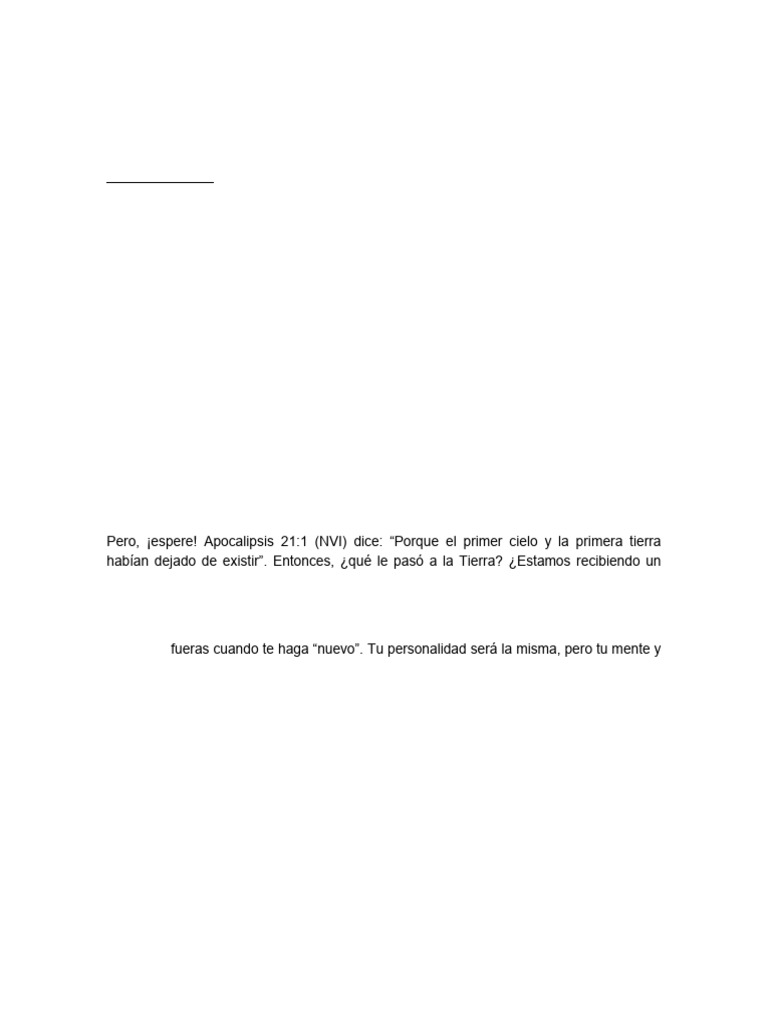 Pero, ¡espere! Apocalipsis 21:1 (NVI) dice: “Porque el primer cielo y la primera tierra