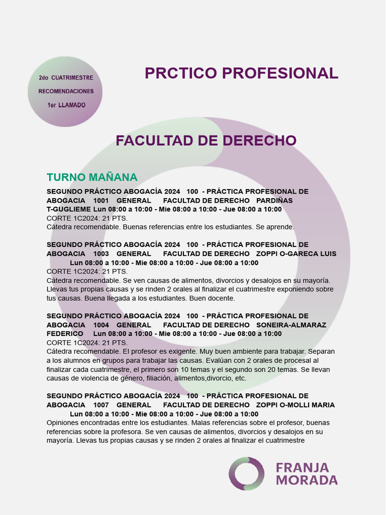 SEGUNDO CUATRIMESTRE ABOGACÍA 2024 164 - PRÁCTICA PROFESIONAL