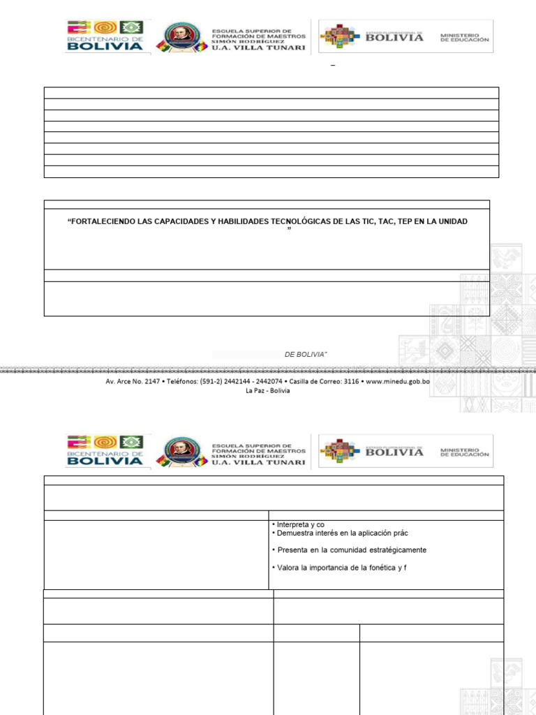 Av. Arce No. 2147 • Teléfonos: (591-2) 2442144 - 2442074 • Casilla de Correo: 3116 • www.minedu.gob.bo