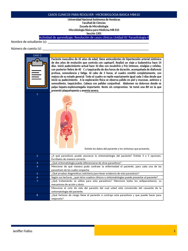 Actividad de aprendizaje: Resolución de casos clínicos Unidad III/ Parasitología II